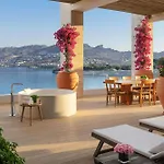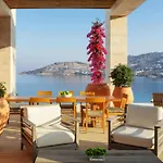 에게 해의 전망을 감상 할 수 있는 객실이 있습니다. 객실은 우아한 가구로 꾸며져 있습니다.